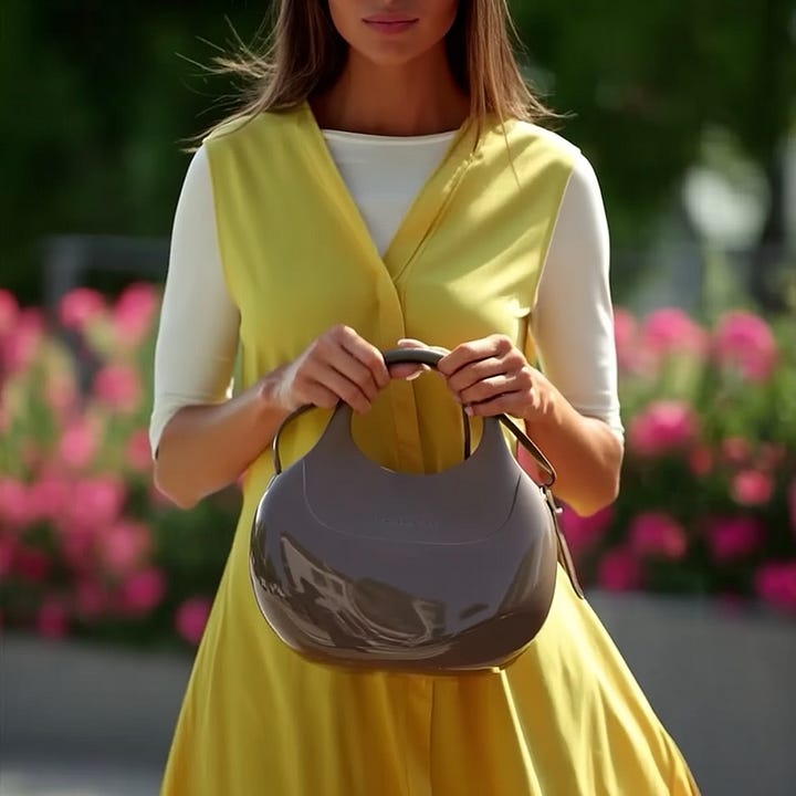 A couple of iterations later, I had my model. Then I would bring the model to Midjourney to generate images of the model with a pair of random boots and a random bag first, (later I will swap these for the original product shots) and then I used a tool called Freepik to put the brand boots and bag to that specific picture Midjourney generated.